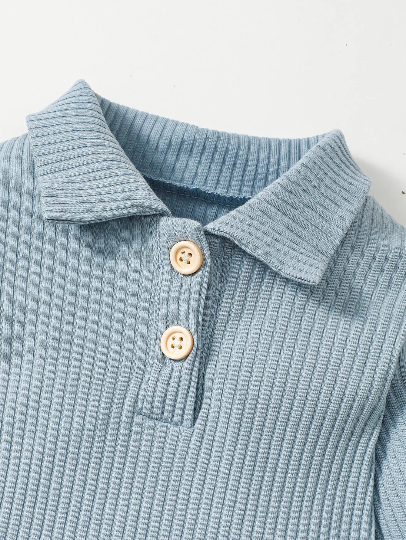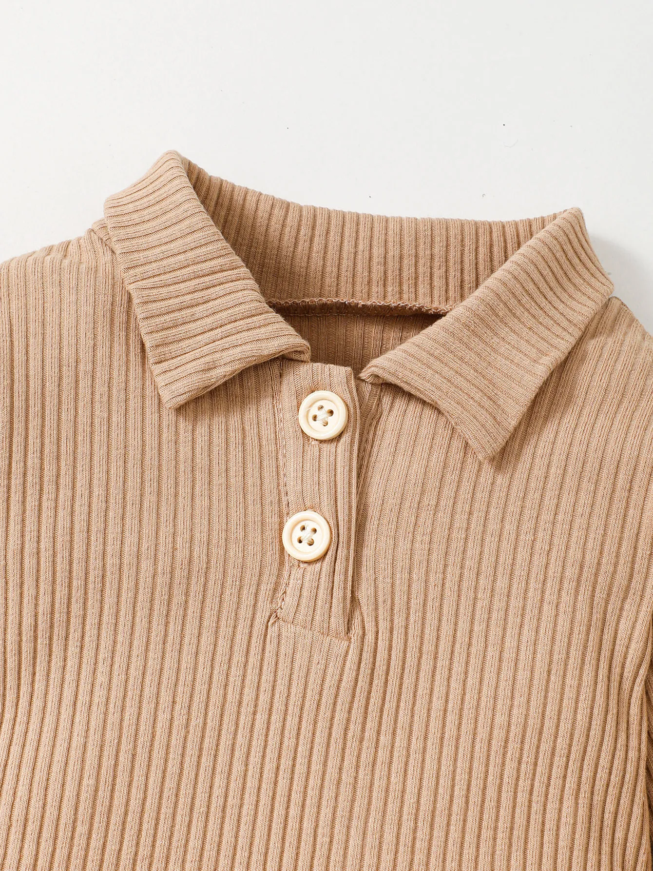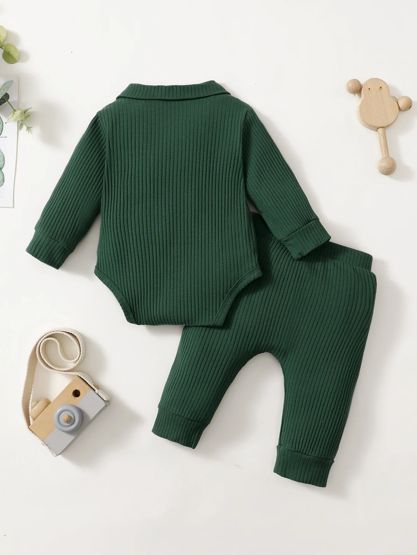 Baby Boy Cotton Hollow Striped Polo Shirt Trousers Suit