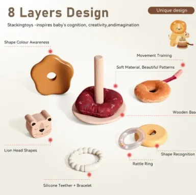 The Baby Early Education Puzzle Lion Set Column Toy Wooden helps babies develop essential fine motor skills. As they manipulate the stackable columns and fit them onto the toy, they strengthen their hand muscles and improve dexterity. The action of stacking pieces also aids in the development of hand-eye coordination and concentration, which are crucial for future learning and play.
