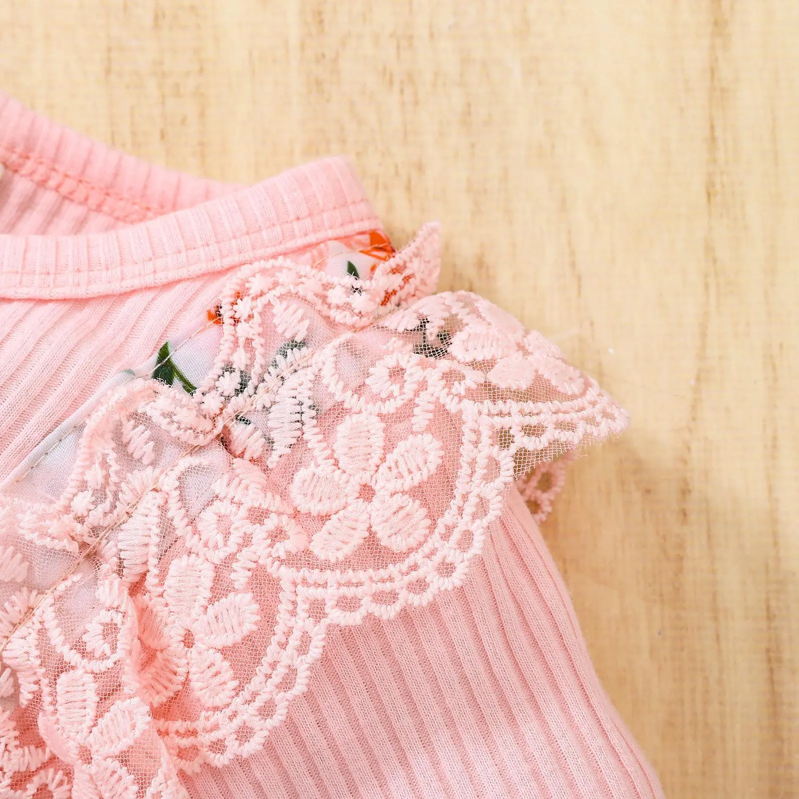 Baby Girl Autumn New Lace Cotton Sunken Stripe Stitching One-piece Romper