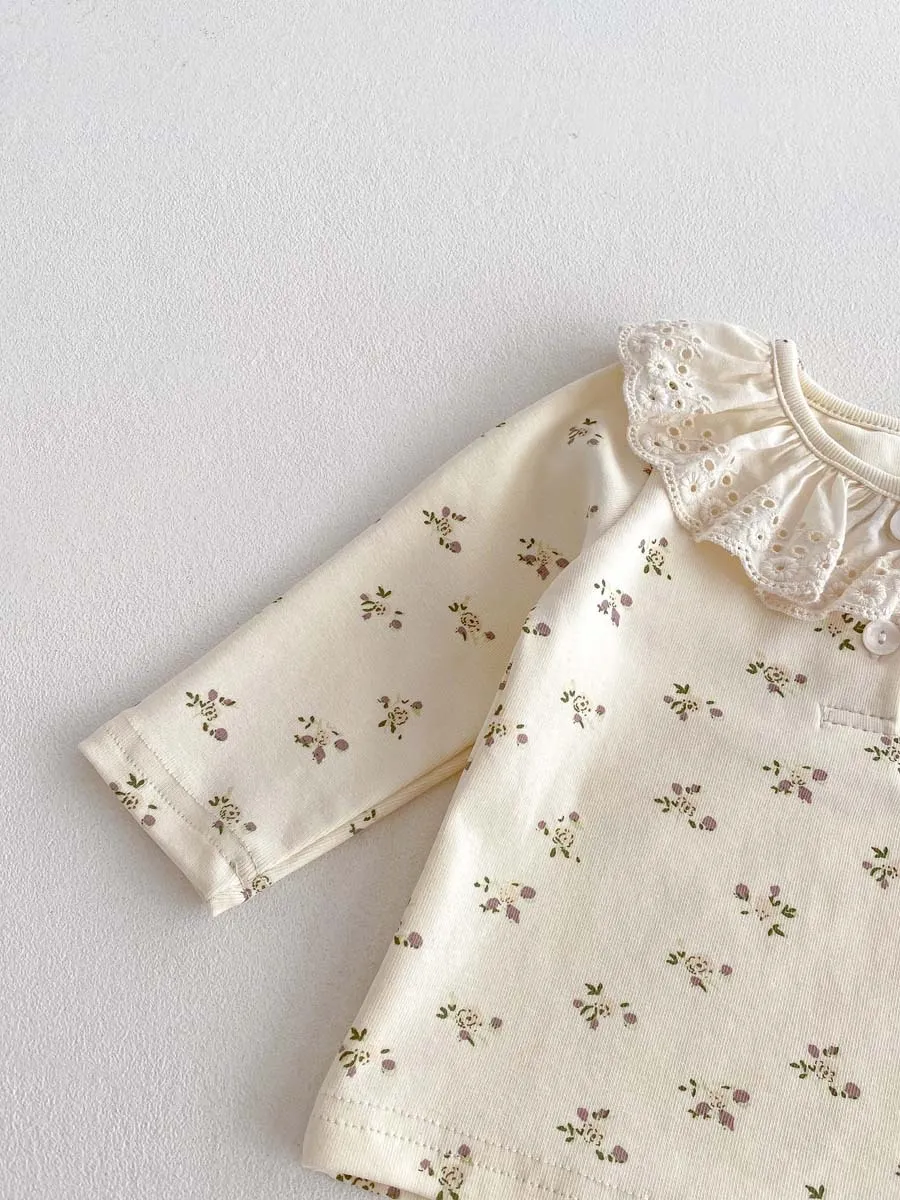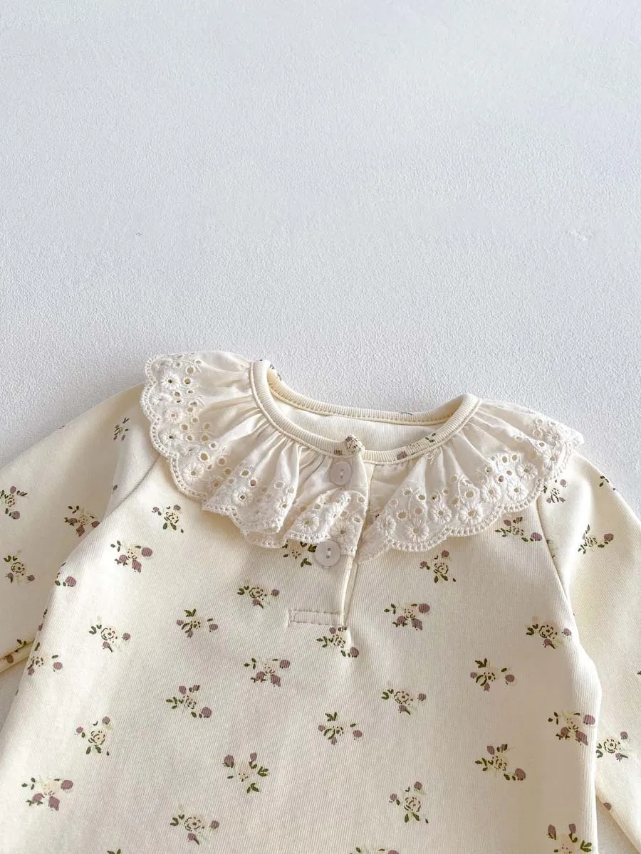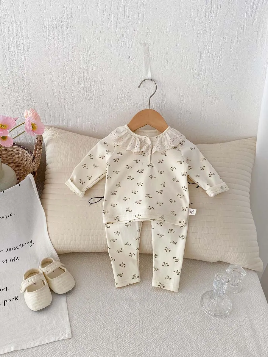 Baby Girl Lace Ruffled Collar Home Wear Two-Piece Set Bottoming