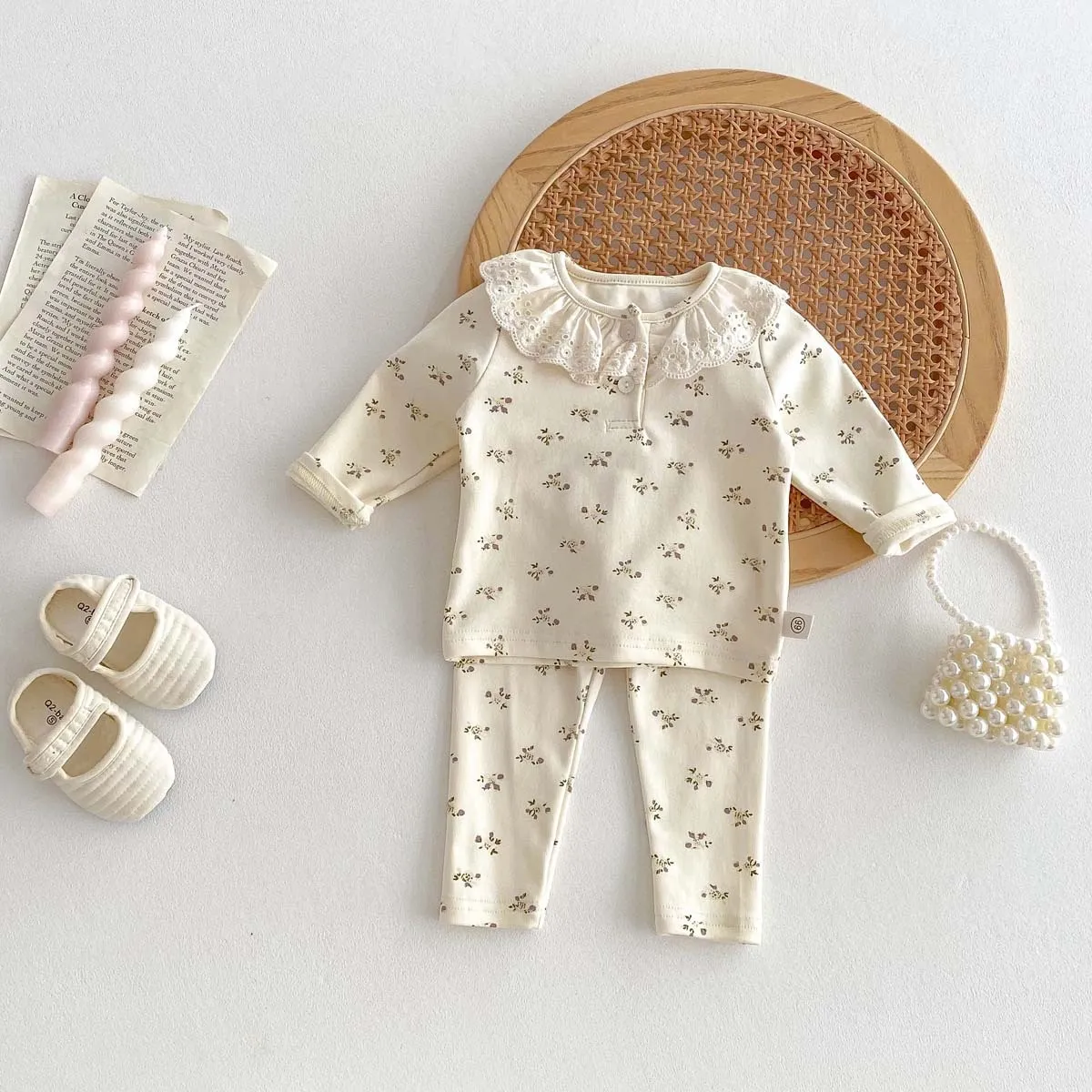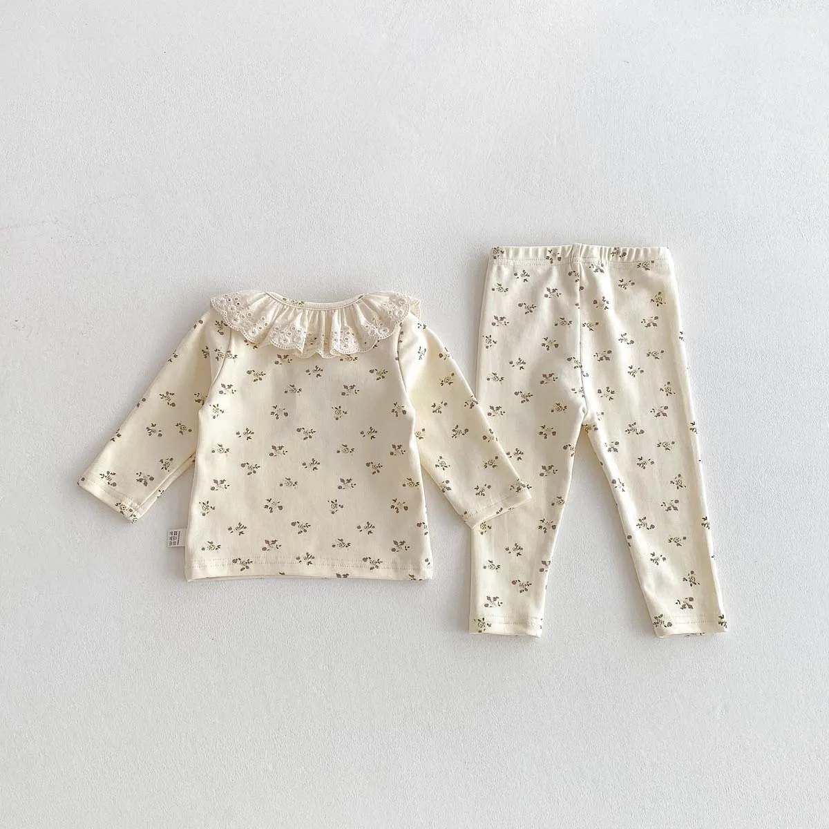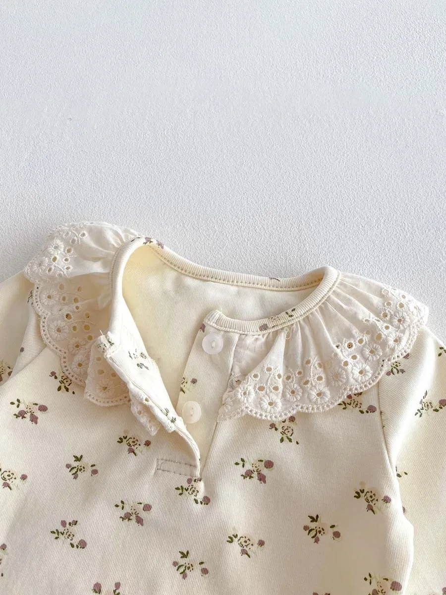 Baby Girl Lace Ruffled Collar Home Wear Two-Piece Set Bottoming