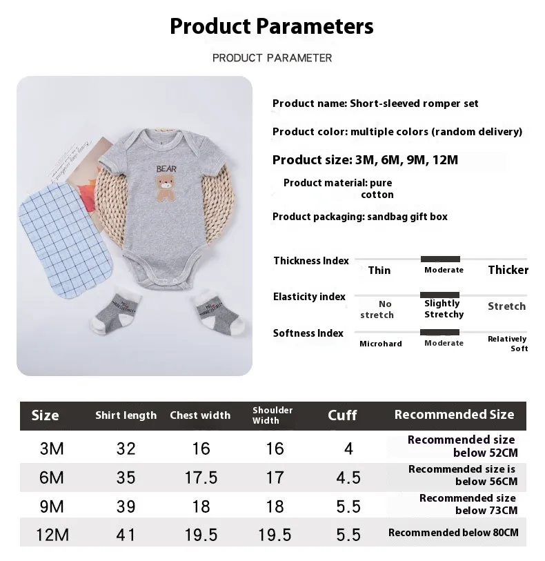 Includes a jumpsuit, socks, and towel โ everything parents need for daily baby care.
