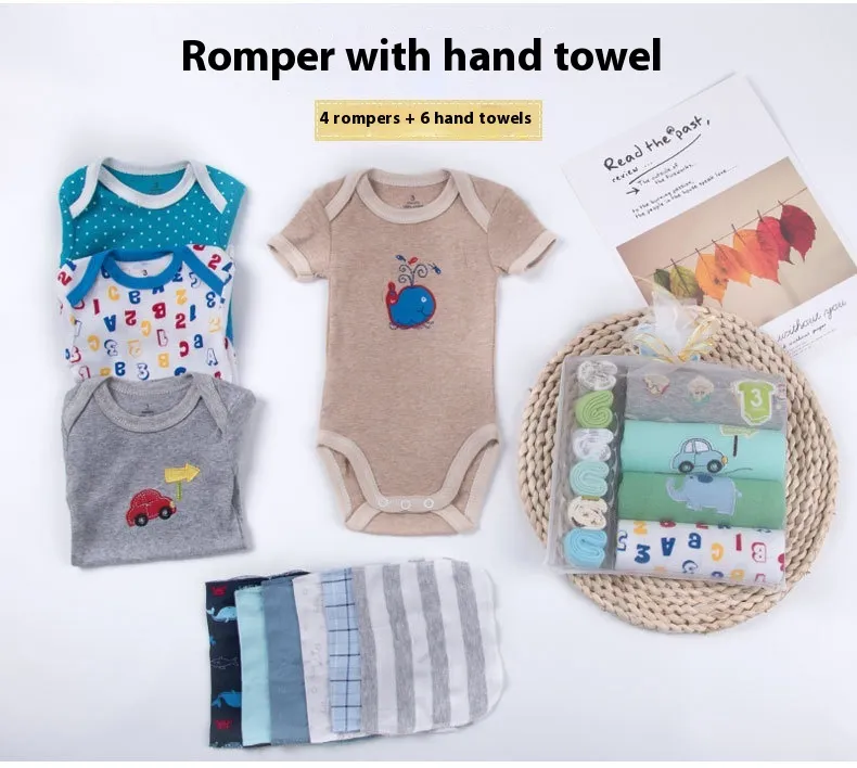 Color: Baby girl romper towel, baby girl romper socks, baby boy romper towel, baby boy romper socks