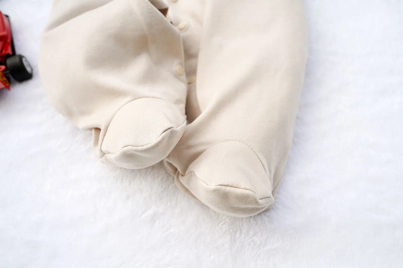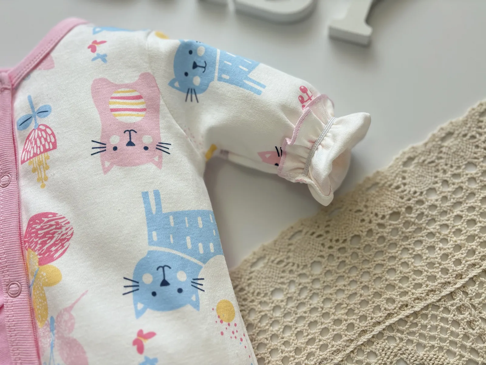 Made from 100% high-quality cotton, the jumpsuit is gentle on delicate baby skin and provides all-day comfort and warmth. The long sleeves and full-length design ensure your baby stays cozy during cooler days or evenings. Easy snap closures or zipper options allow quick dressing and diaper changes, making life easier for parents.