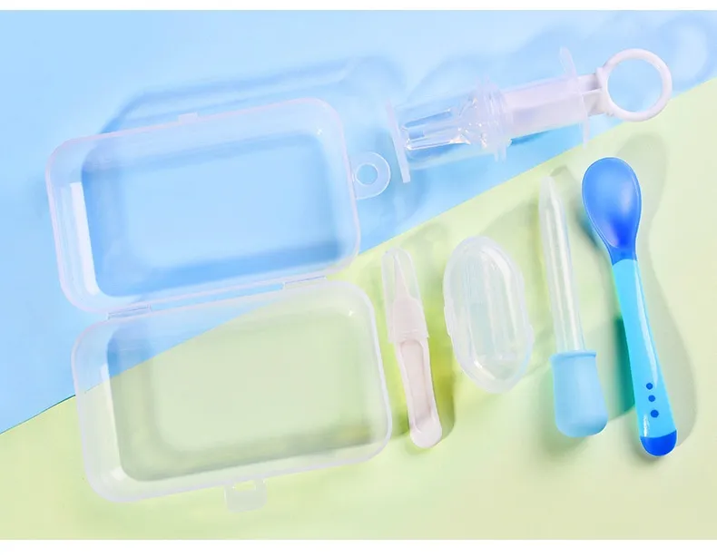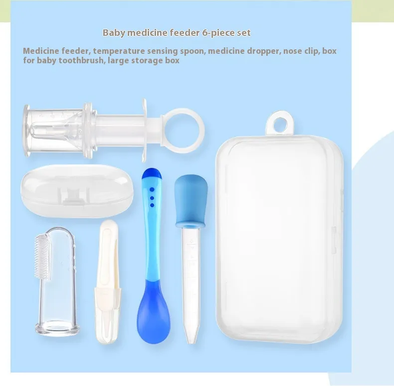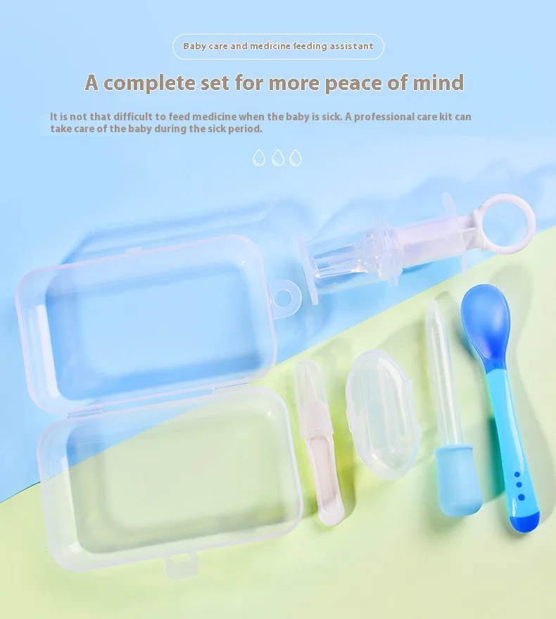 Silicone safety medication dispenser+dropper dispenser+thermos spoon+nose clip+finger toothbrush