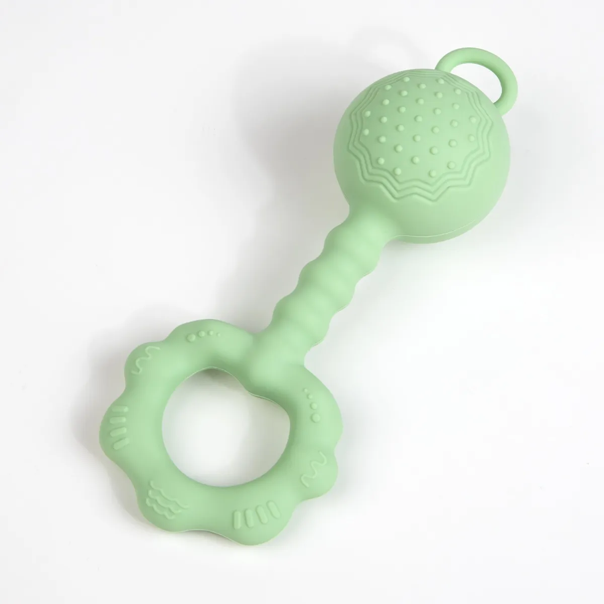 The design of the Baby Teether Silicone Rattle is specifically created with little hands in mind. Its ergonomic shape makes it easy for babies to grip, hold, and shake. Whether your baby is 3 months or 9 months old, the rattle is lightweight enough for even the smallest hands to hold and maneuver. Its round, handle-like shape ensures that babies can easily grasp it, offering both teething relief and entertainment without frustration.