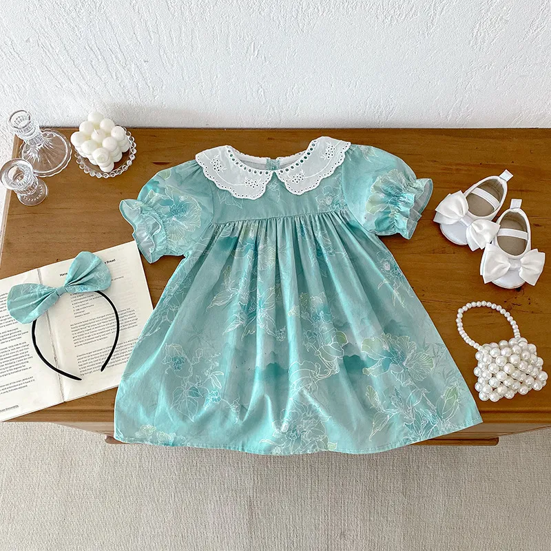 Introduction to the Baby Triangle Rompers Girl Puff Sleeve Dress