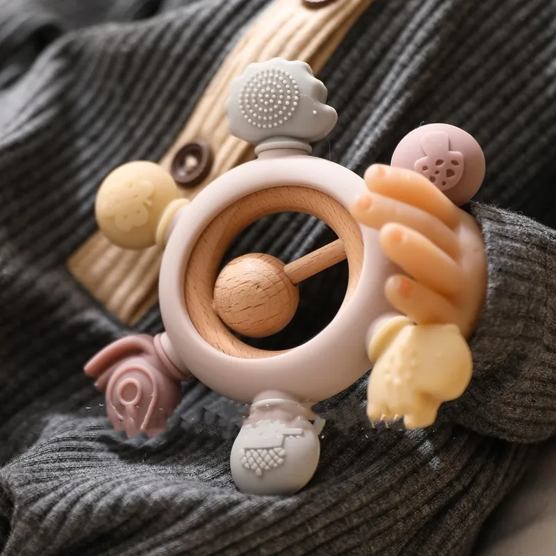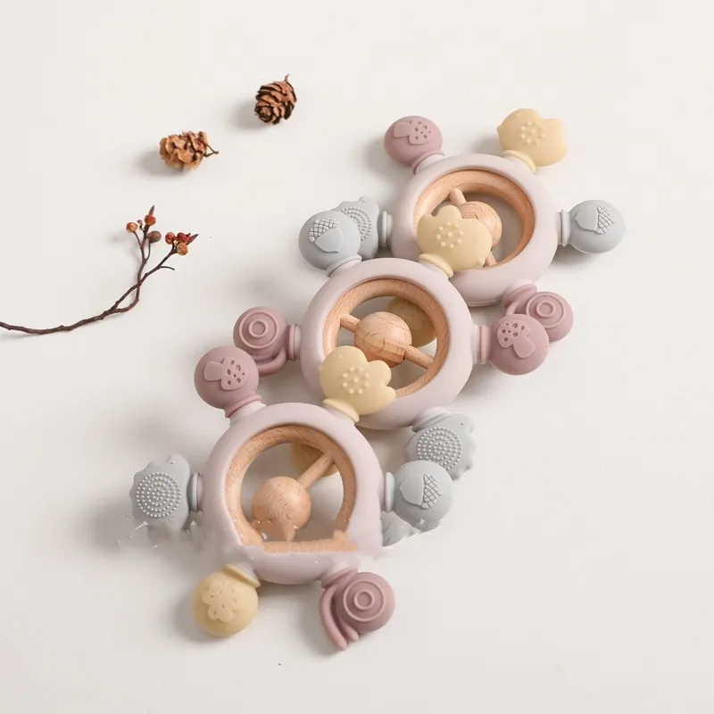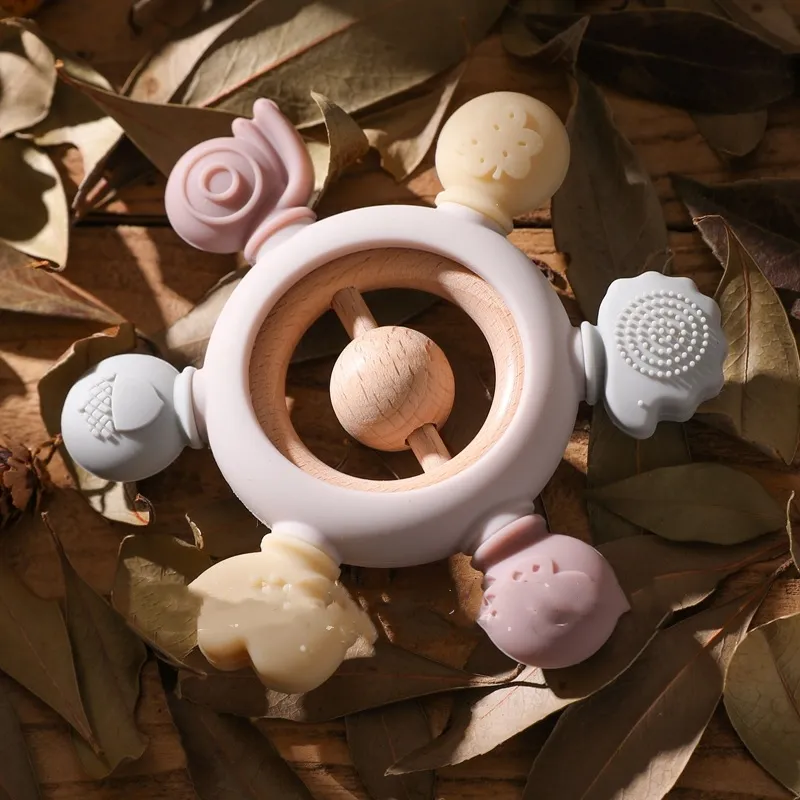 One common habit that many babies develop during teething is hand sucking. While this can bring temporary comfort, it can also lead to hygiene issues and a prolonged dependency on sucking. The Baby's Molars Prevent Hand Sucking Silicone Yaoyaole Tableware Soothing Rattle Toy helps to gently prevent this habit. The rattle and soothing texture encourage babies to hold and play with the toy, which provides a healthier alternative to sucking on their fingers or hands.