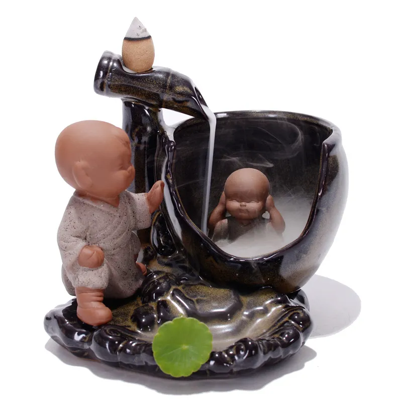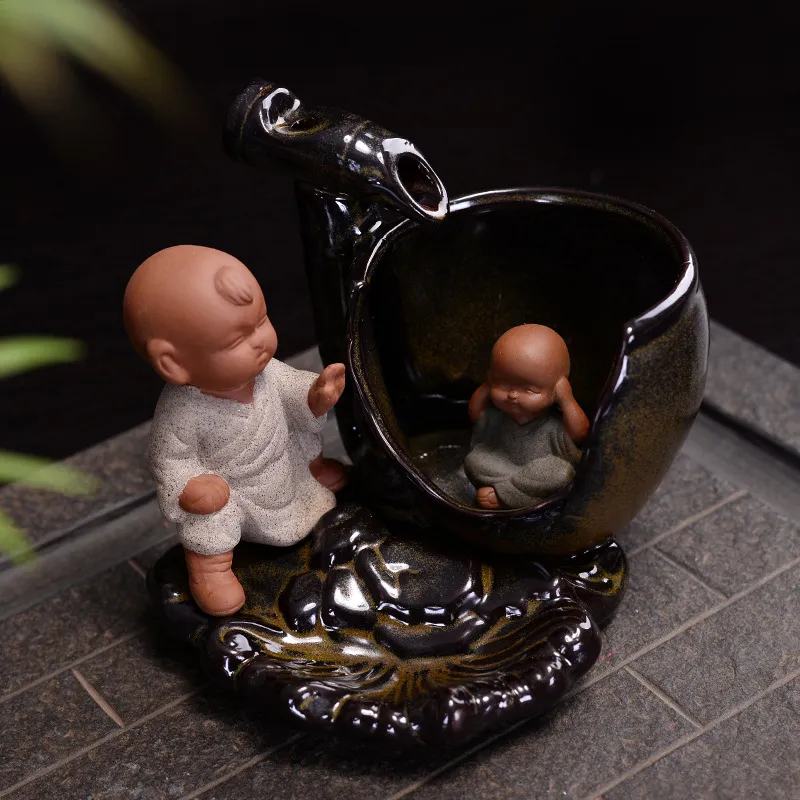Backflow Incense Burner Ceramic Creative Ornaments: Large Size Sima Guang Smashing Cylinder Little Monk Sandalwood Burner