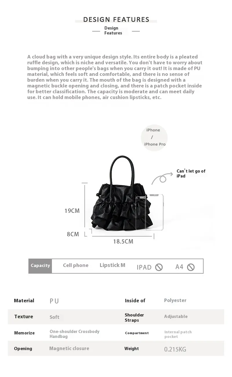 Bag Women's Pleated Ruffled Handbag Casual All-match Messenger Bag