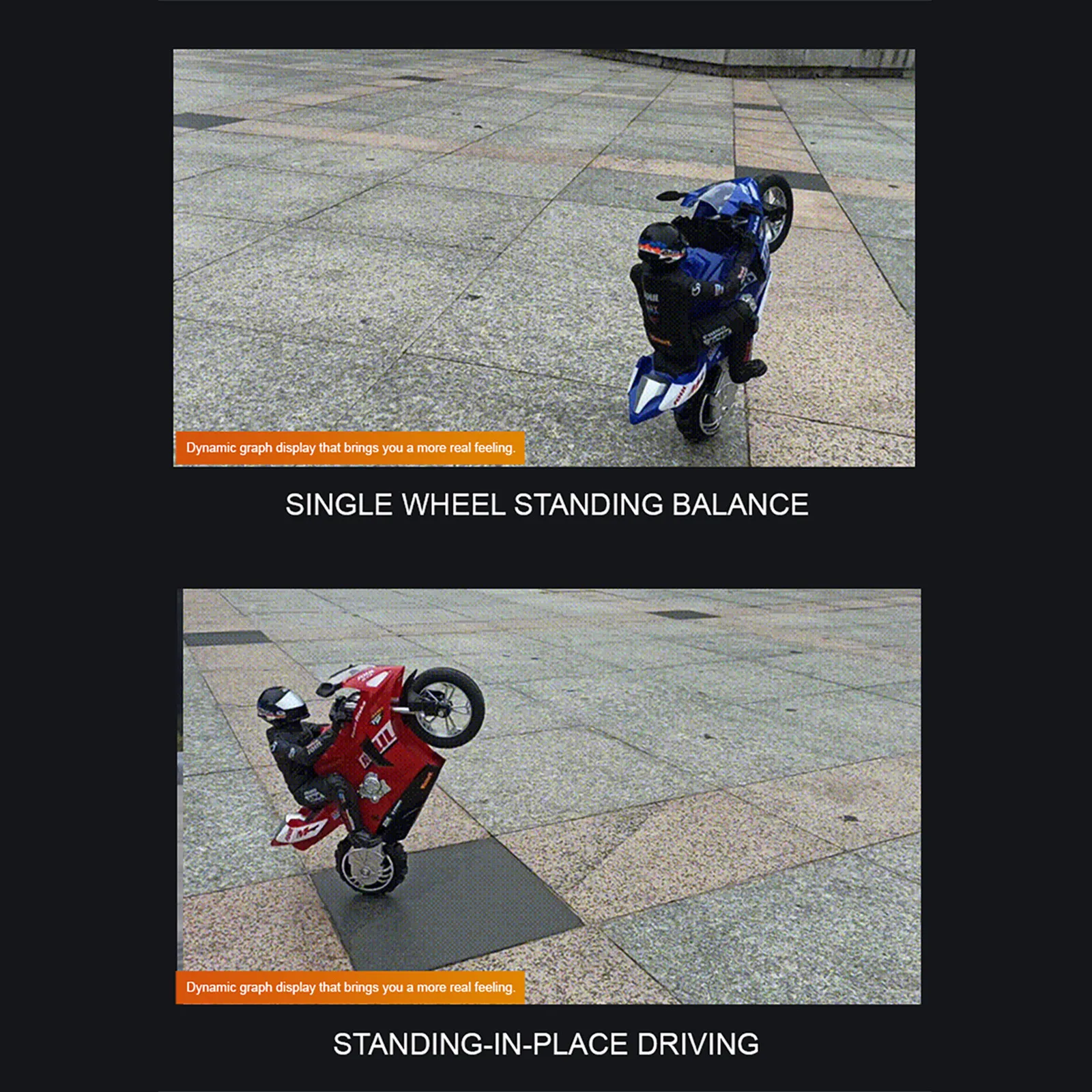 Thanks to the advanced self-balancing system, this electric motorcycle is capable of standing upright on its own, even when performing stunts. Whether it's drifting, spinning, or cruising, the motorcycle maintains its balance, offering a smooth and thrilling performance.
