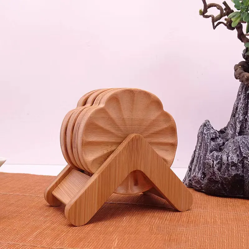 Bamboo Coaster Chinese Wooden Set Bracket – Elegant and Functional Drinkware for Your Home
