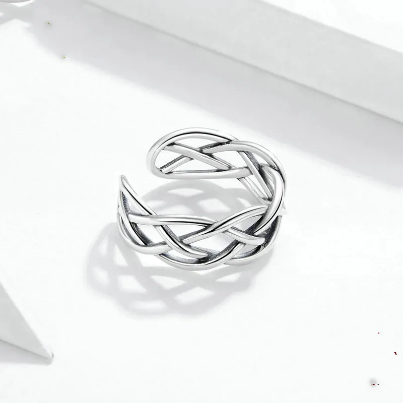 Bamoer Genuine 925 Sterling Silver Woven Texture Ring