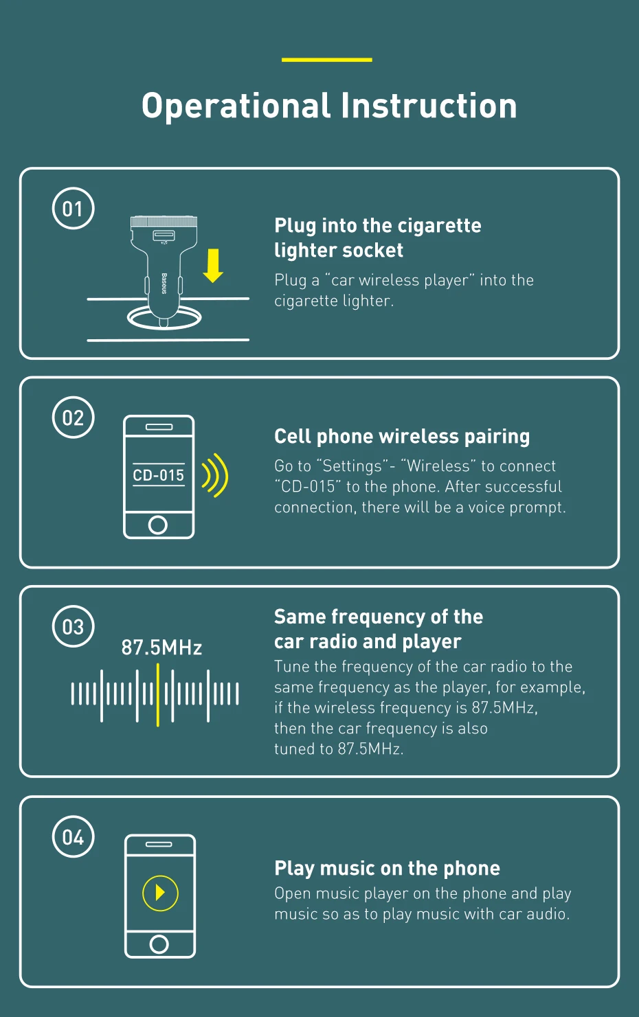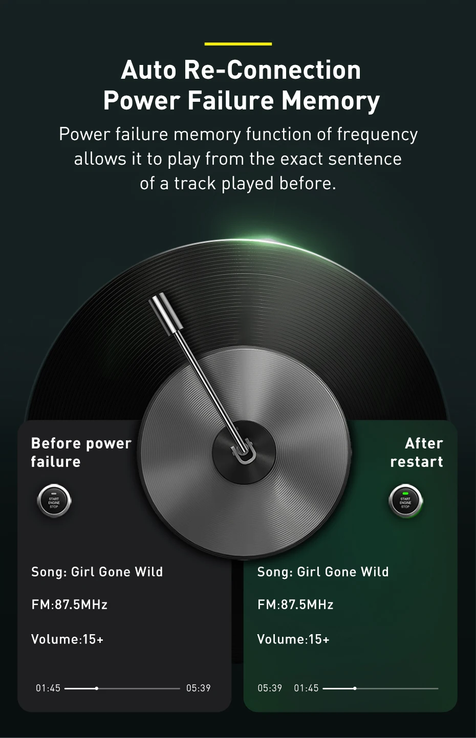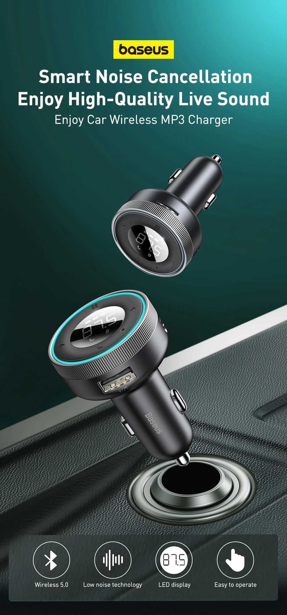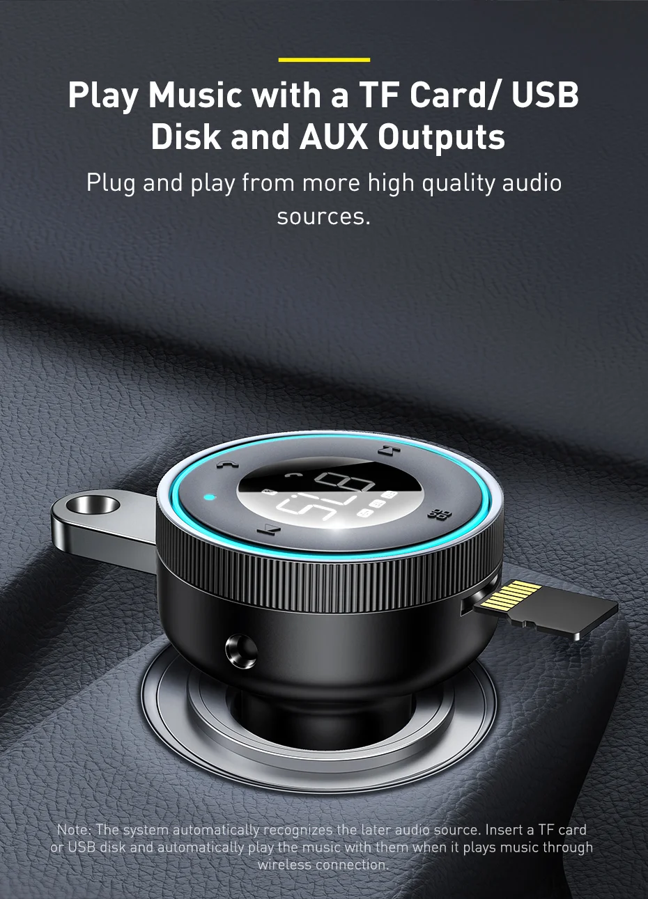Whether you prefer FM transmission, AUX input, or USB playback, the Baseus FM Transmitter caters to all your audio needs, ensuring you can enjoy your favourite music on every journey.