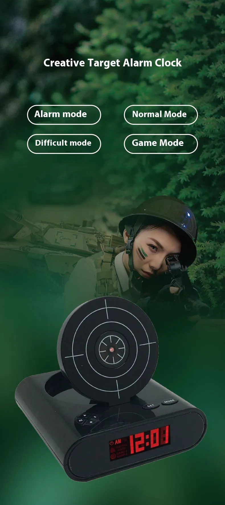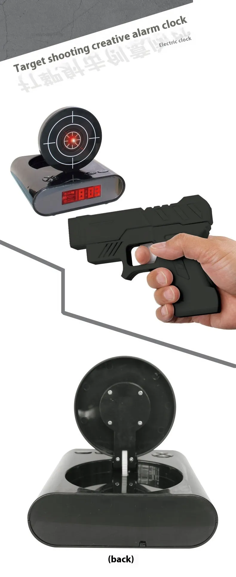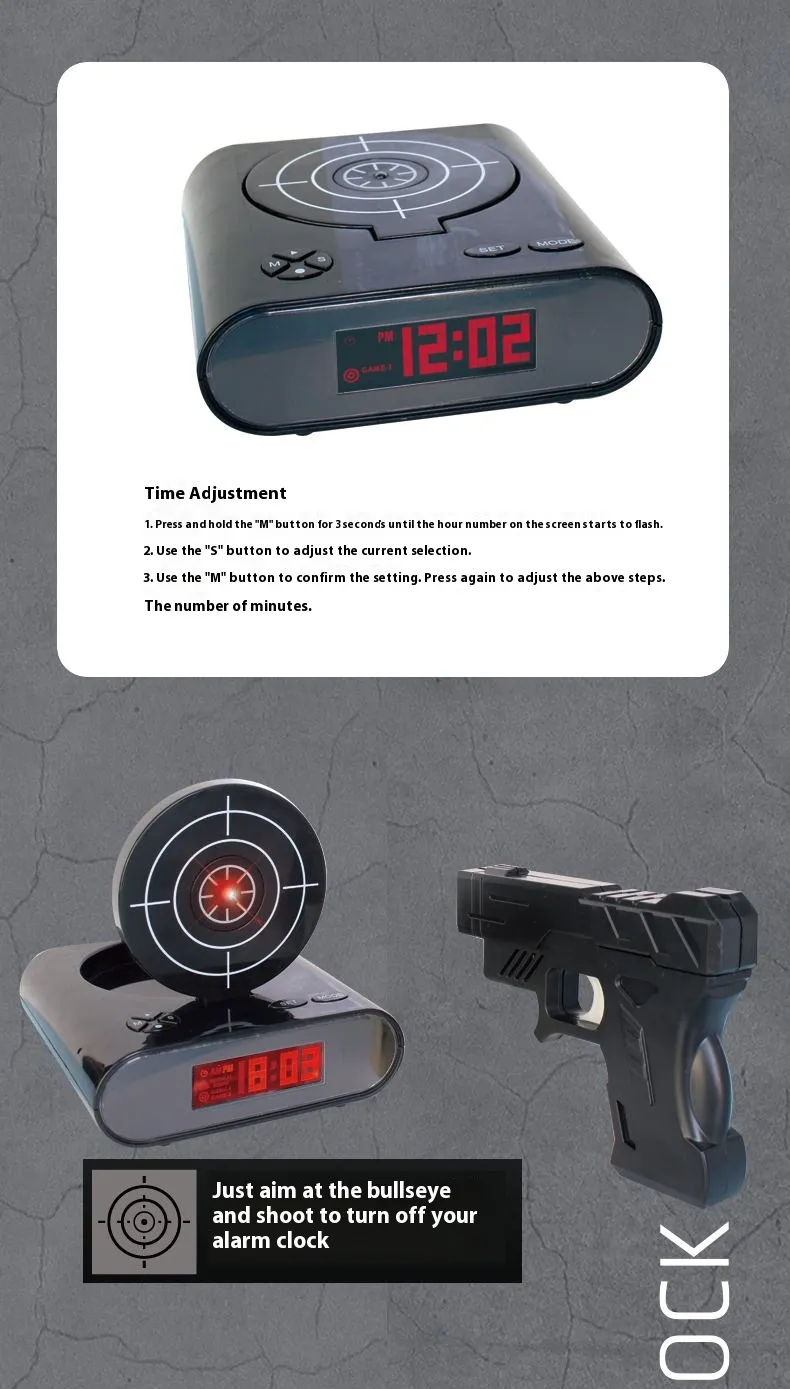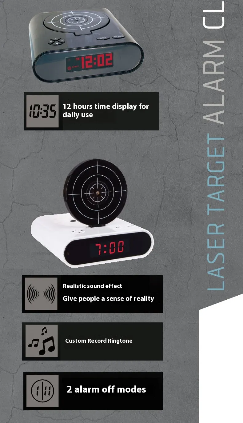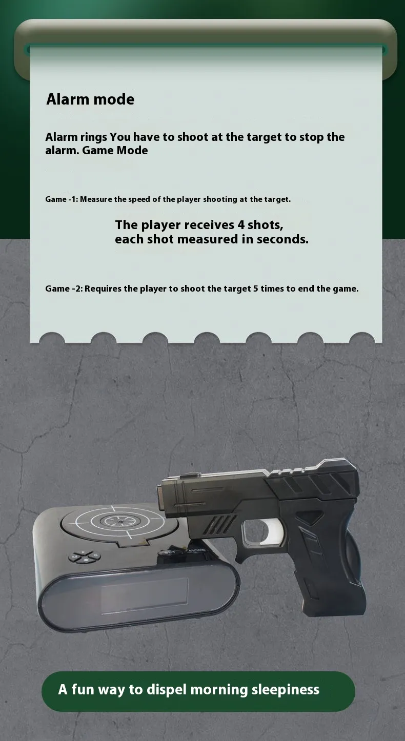- Fun and Playful Design: Combines traditional alarm clock features with a shooting game.