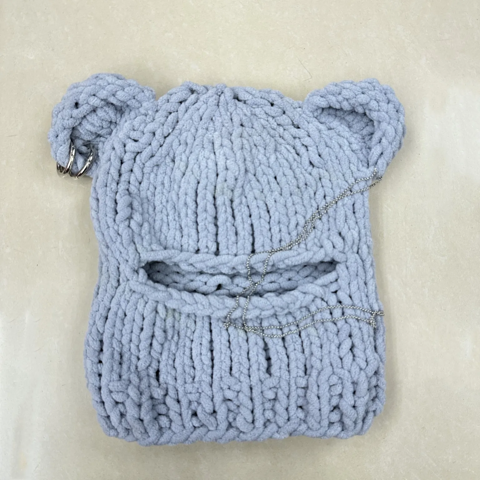 The bear ears and chain circle detail add a fun, cute touch to your winter wardrobe, making this beanie a statement piece for those who love whimsical accessories.
