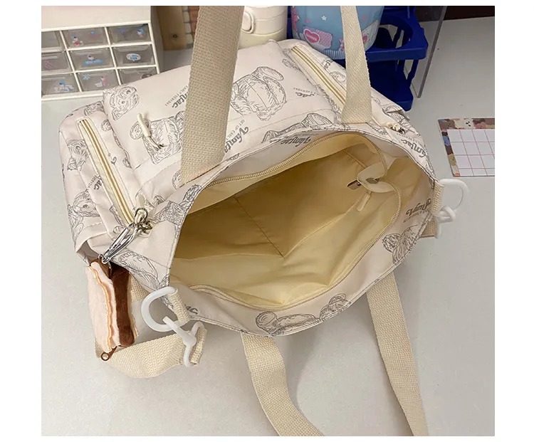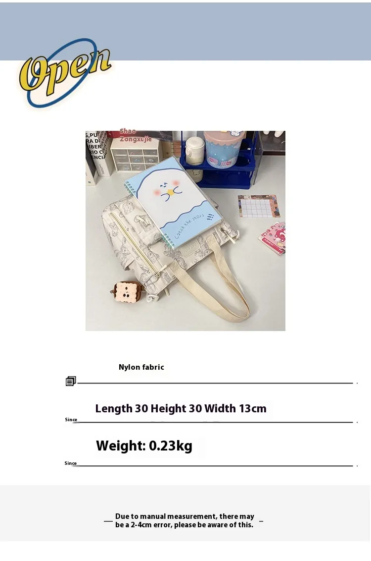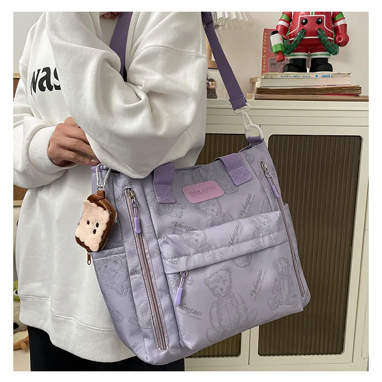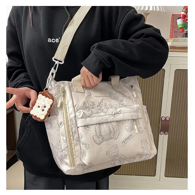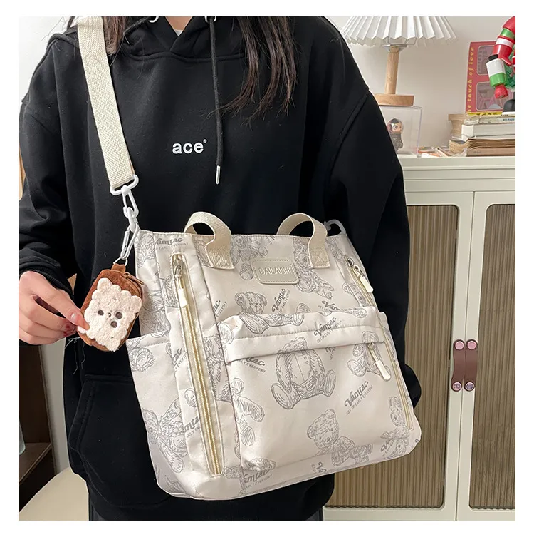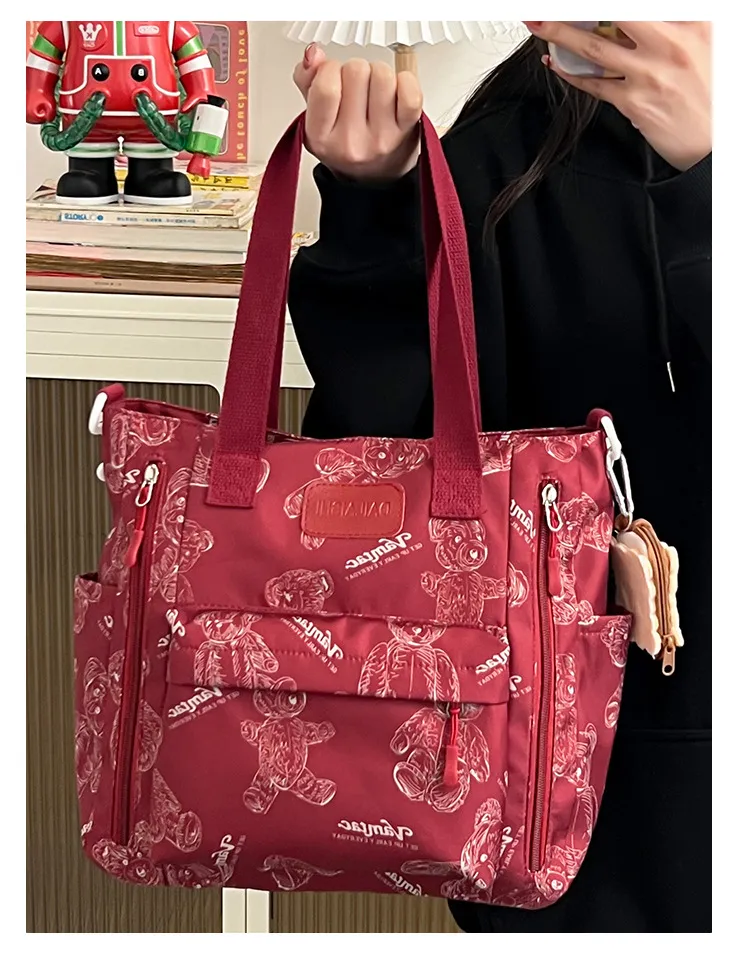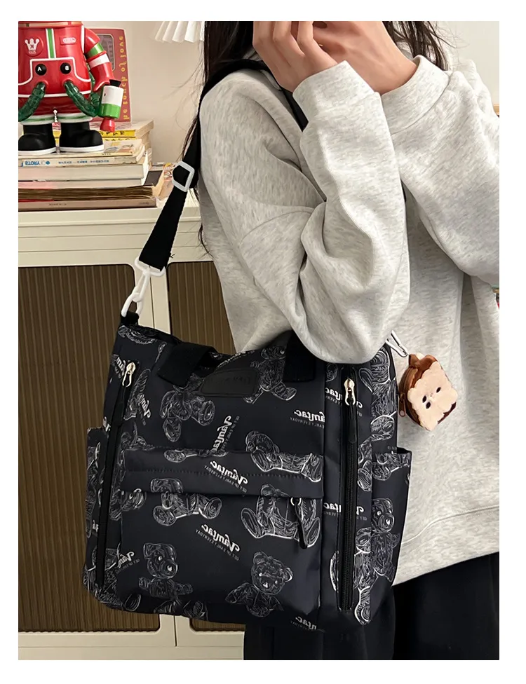 Bear Print Large Capacity Multi-Pocket Tote Bag – Shoulder Bag and Crossbody Lightweight Handbag