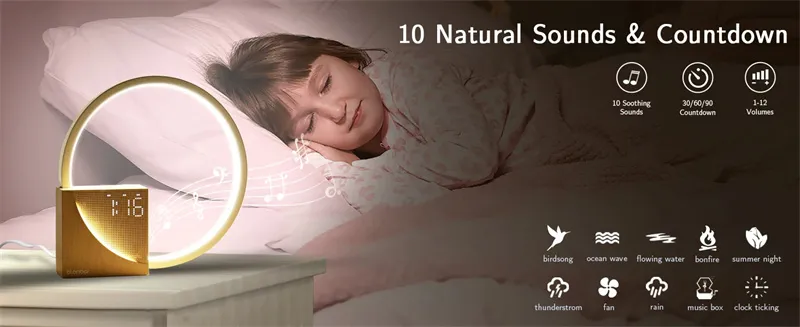 Multifunctional Desk Lamp: LED Desk Lamp, Digital Alarm Clock, Natural Sounds, and Wake Up Light are integrated into