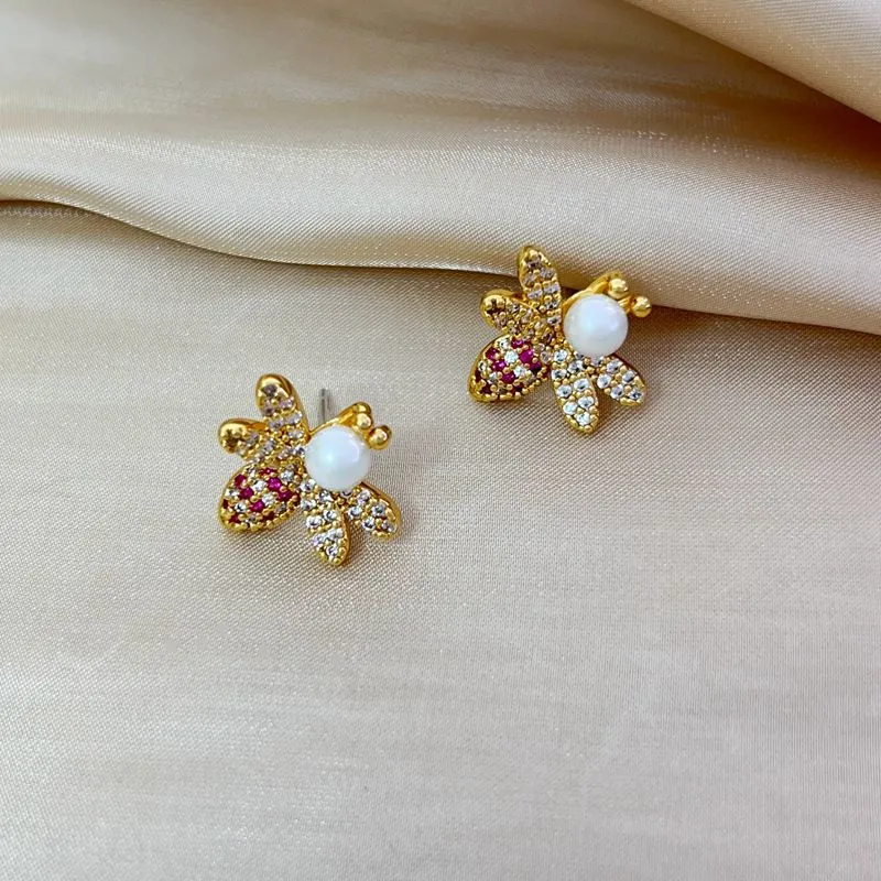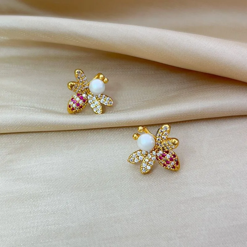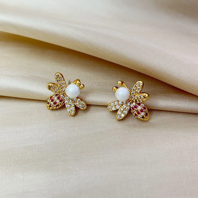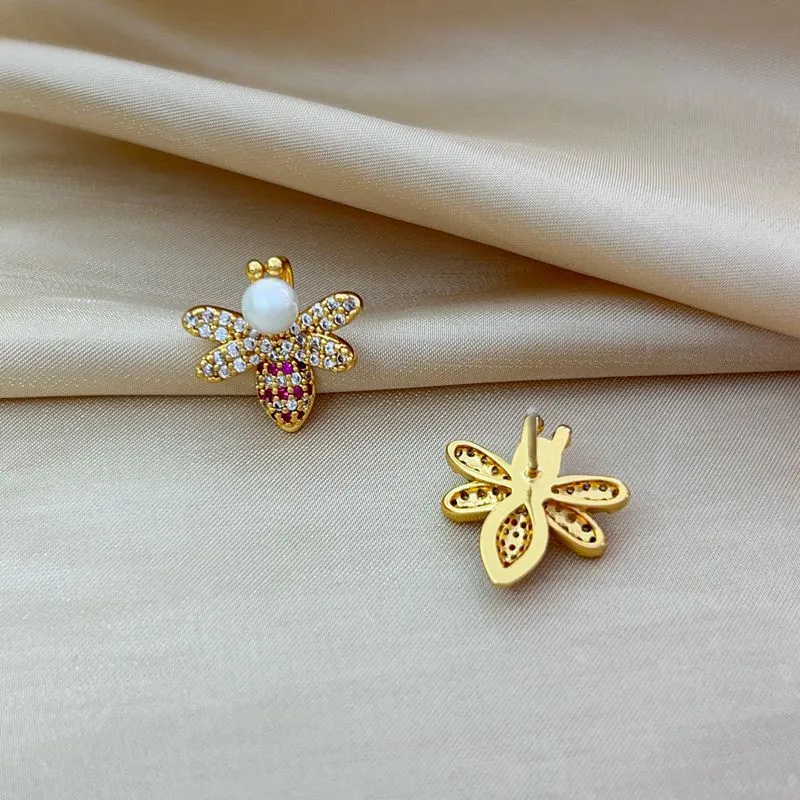 Bee Light Luxury Zircon 925 Silver Stud Earrings