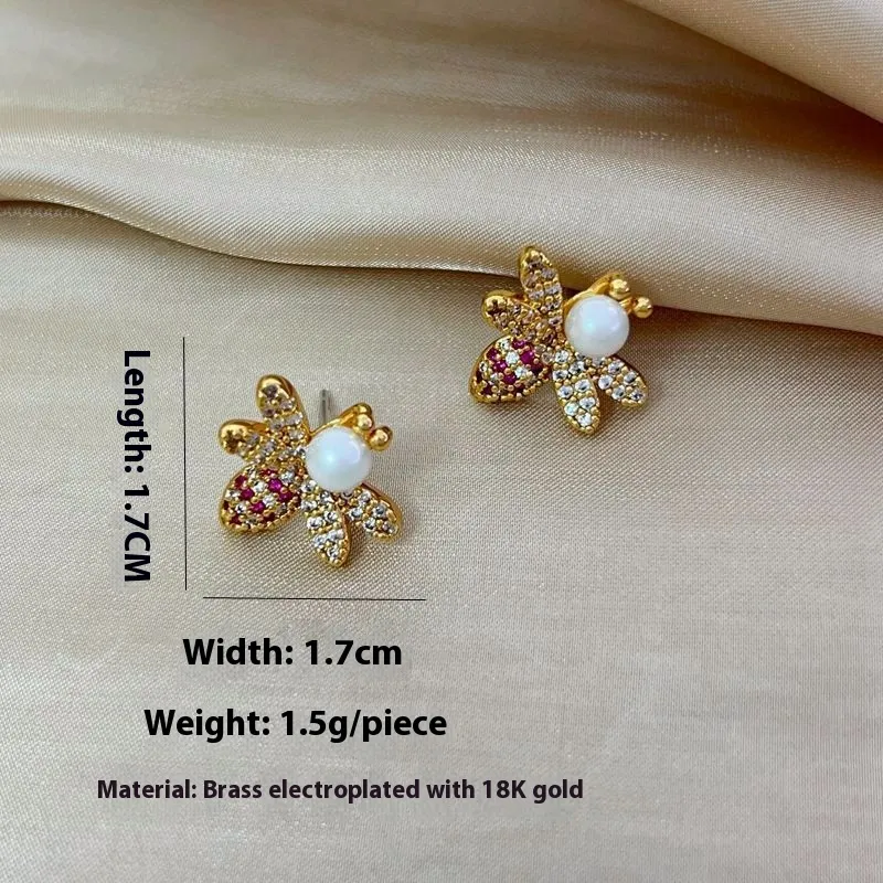 Bee Light Luxury Zircon 925 Silver Stud Earrings