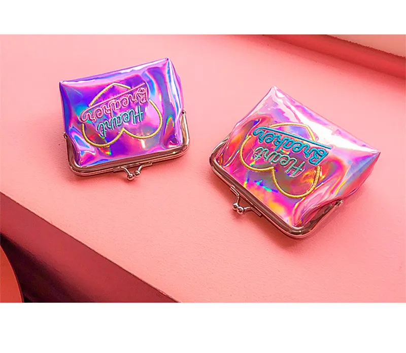 Bentoy Harajuku Girl Crush Mini Hologram Wallet Purse Women Laser Embroidery Short Wallet Clutch Card Holder Coin Purse Money B