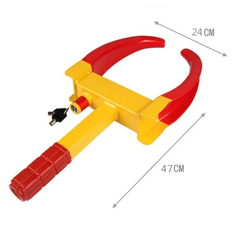 Designed with bright colors such as yellow or red, this wheel clamp is highly visible, making it a strong deterrent to potential thieves. Its eye-catching design alerts anyone nearby that the trailer is secured and under protection, significantly reducing the chances of theft or attempted break-ins.