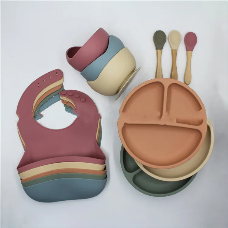 Bib Dinner Plate Spoon Bowl 4 Piece Set Silicone Baby Bowl Bib Plate Set