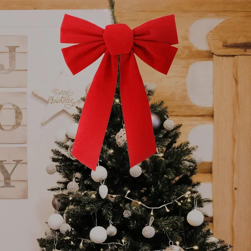 - Place the red bow on the top of your Christmas tree for a stunning centerpiece that will catch the eye of everyone in the room. If you prefer, you can also attach the bow to other areas of the tree, such as around the middle branches or at the base.