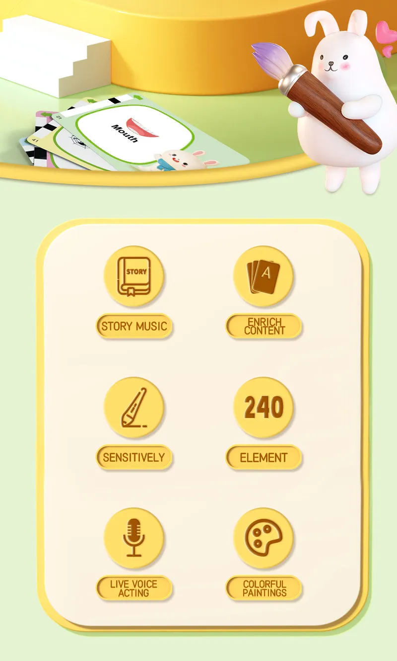 Engaging Audio and Visual Cues: Uses sounds, lights, and images to help children associate words with objects, making