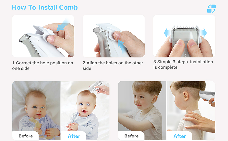 - Super Quiet Trimming Design: Advanced noise reduction technology and motor enable this hair clipper to work in lower vibration and noise without waking up your babies. This ultra-quiet design can help your baby do not afraid hair cutting. Your baby will be relax and comfort, and enjoy a peaceful and ultimate experience for the hair cutting.