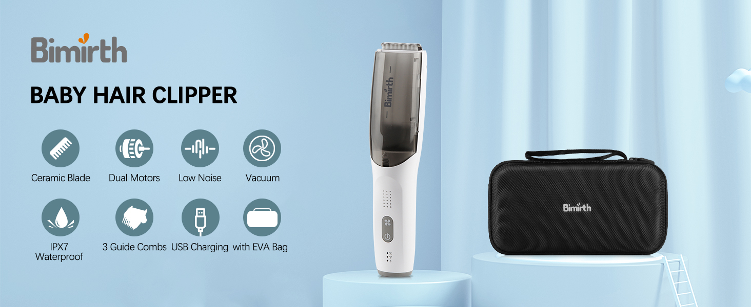 stress-free baby haircuts with the Bimirth Vacuum Baby Hair Clipper. This amazing baby hair trimmer has a built-in hair vacuum that