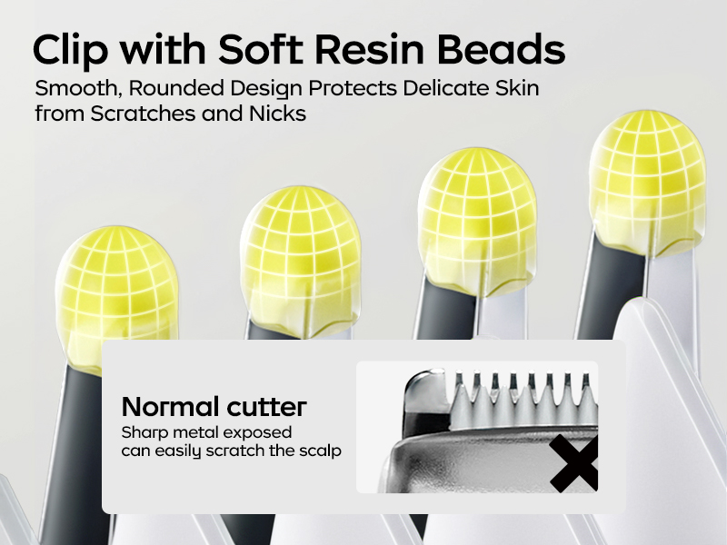 - Designed for safety:The patented resin ball encases the ceramic blade, providing protection against scratches, cuts, and pokes, ensuring gentle care for your baby's delicate skin. The low-thermal ceramic material maintains a blade temperature below 36°C, preventing burns on the scalp