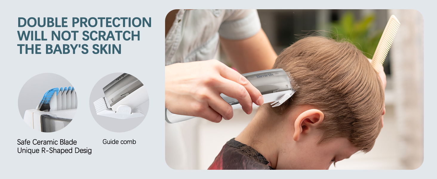 - 【Specially Designed R Round Cutting unit】 Special widened R-shaped round corner design of the cutting unit, with Cullinan ceramic blade, make the outside of the cutting unit more rounded, and more sharp inside. This design allows you to give your baby a safer, efficient and comfortable haircut.