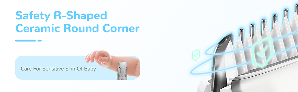 - 【"R" Tooth Design】 ceramic blade, unique R-shaped chamfer design, does not scratch the baby's skin, does not pull or pull the hair.