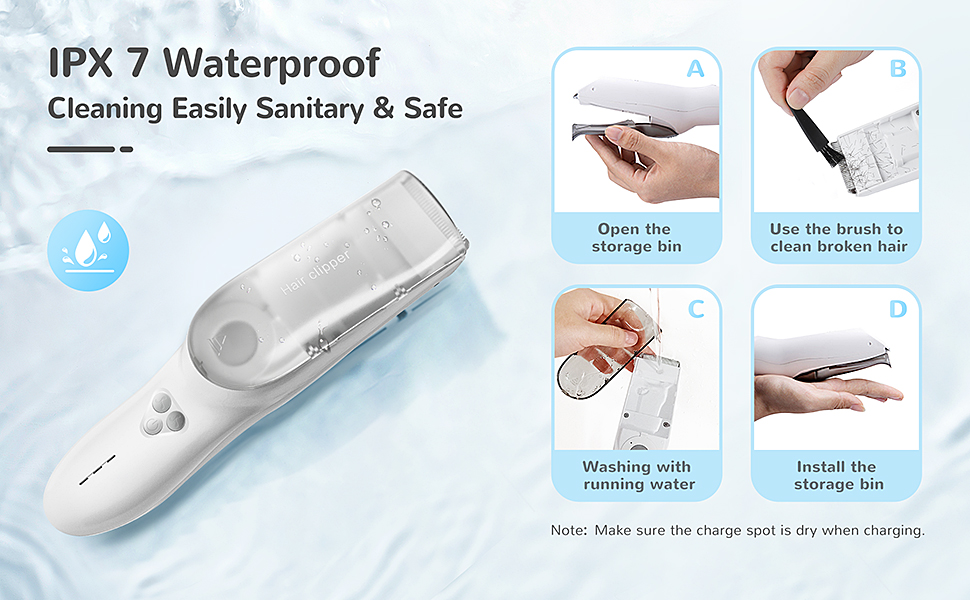 - Fully Washable: The entire body of the LUSN baby hair trimmer is IPX-7 waterproof, allowing for easy cleaning in running water after each use