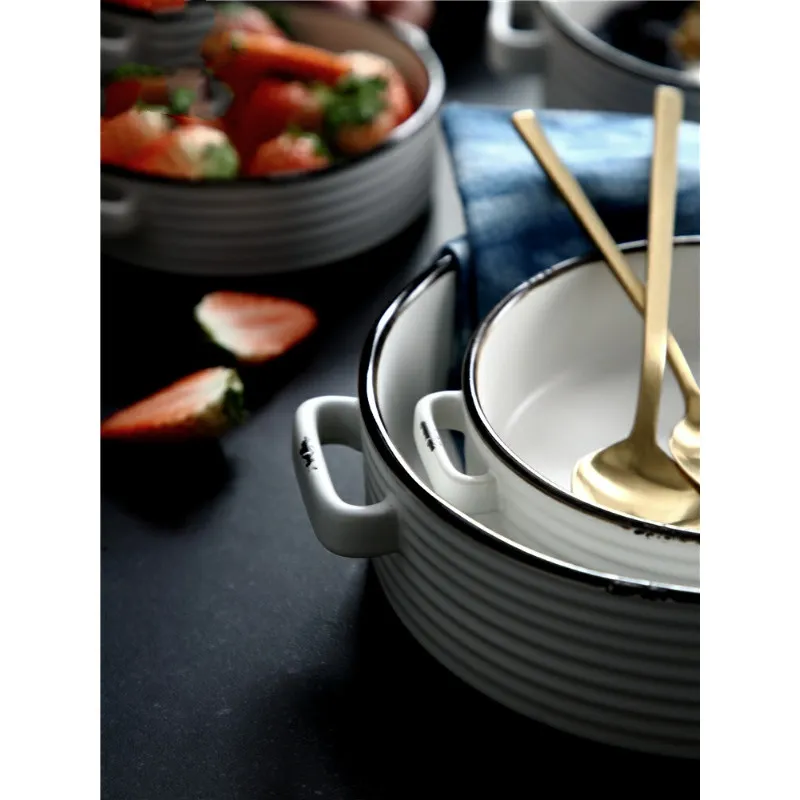 The two handles of the Binaural Noodle Soup Bowl provide extra convenience when serving or carrying the bowl. Whether it’s hot food fresh out of the microwave or a dish you’re serving at the table, the handles ensure a secure and comfortable grip, making it easier to handle larger portions or heavier bowls. It’s the perfect design for both everyday use and special occasions.
