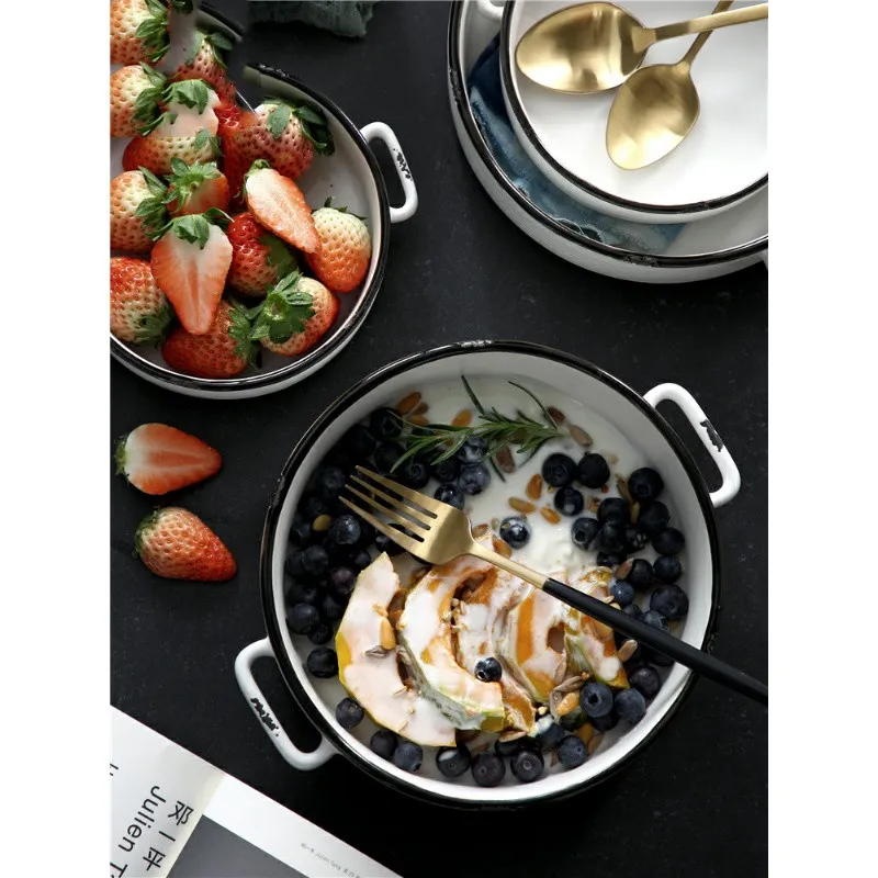 The two handles of the Binaural Noodle Soup Bowl provide extra convenience when serving or carrying the bowl. Whether it’s hot food fresh out of the microwave or a dish you’re serving at the table, the handles ensure a secure and comfortable grip, making it easier to handle larger portions or heavier bowls. It’s the perfect design for both everyday use and special occasions.