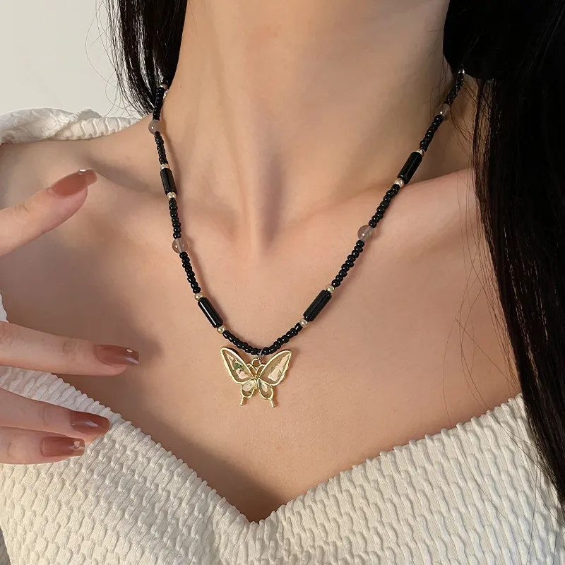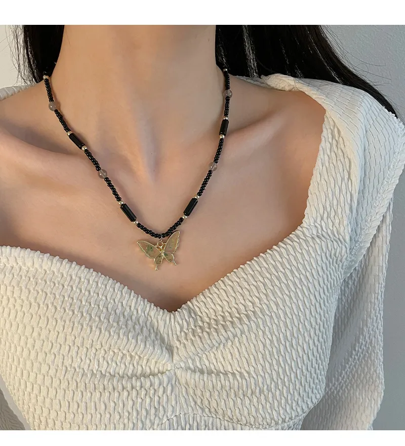 Color: Black beaded butterfly necklace