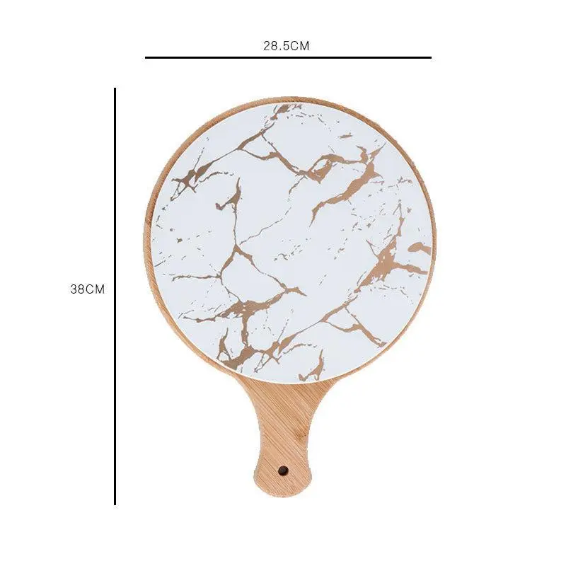 The ceramic surface of the tray is easy to clean and maintain. Simply wipe it down with a damp cloth or mild soap, and it will retain its glossy, pristine finish. The wooden handles are also easy to care for; simply wipe them with a dry cloth to maintain their natural shine.Its stain-resistant ceramic surface ensures that spills and food particles are easy to remove, making the tray an excellent choice for entertaining and everyday use.