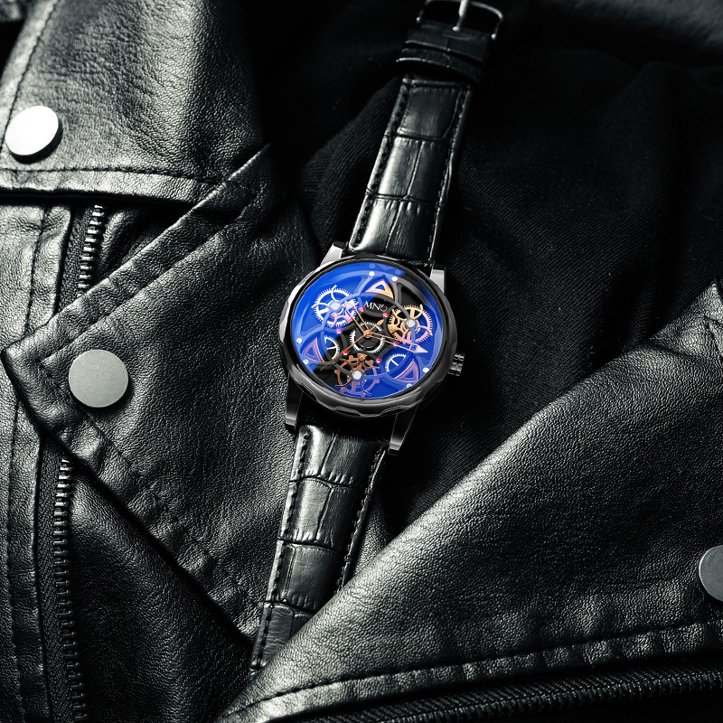 Black Gold Trend Three Dimensional Watch Personality Gear Gyro Season To Run Watch Men