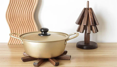 Made of black walnut, this wood table mat insulates the heat with thick base and ensures that the tabletop is not damaged.