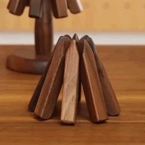 This wood table mat adopts a unique tree design, it consists of 3 pieces of heat insulating mats, which can be stacked to form a tree, not