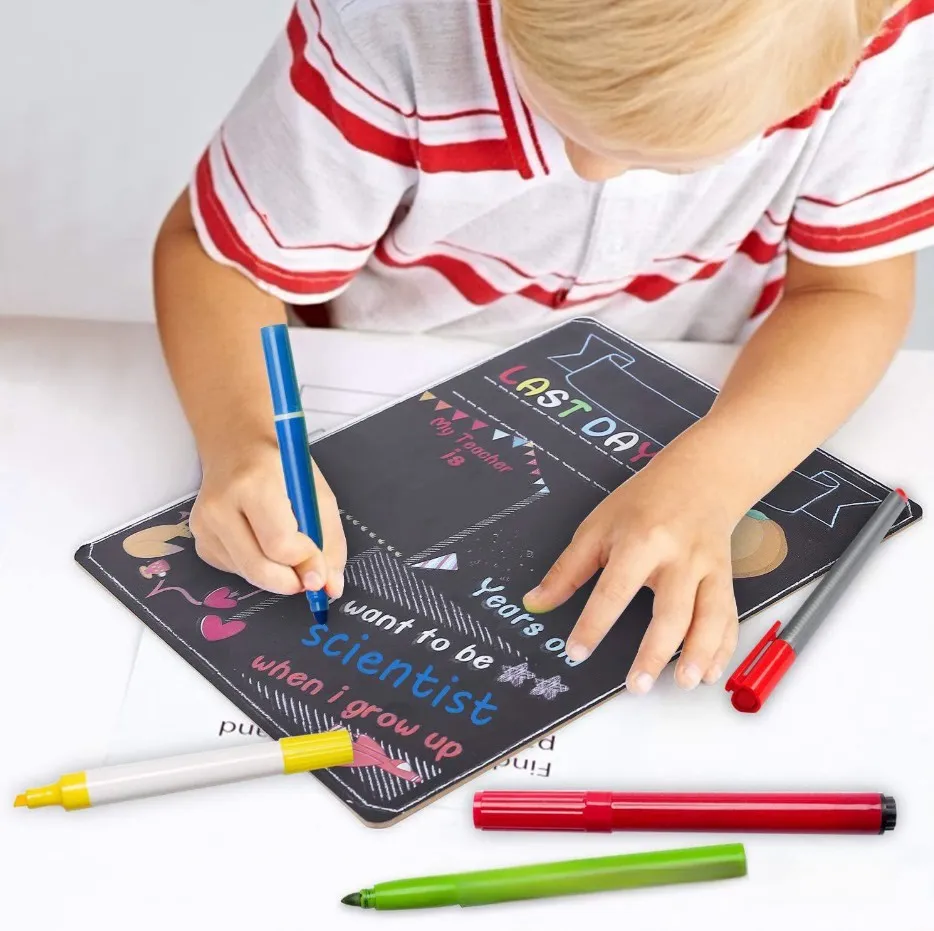 This wooden craftwork is ideal for photos on the first day of school. The customizable blackboard surface serves as a great backdrop for capturing memories with your child, making it easy to commemorate the milestone.