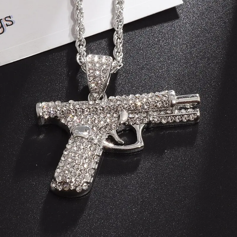 Bling Iced Out Pistol Pendant Submachine Gun Necklace Men