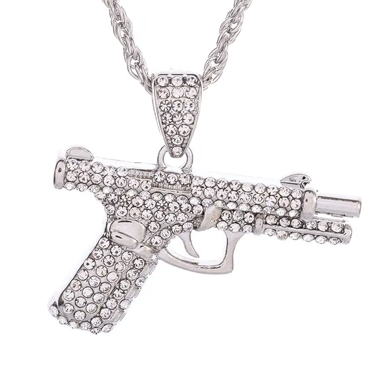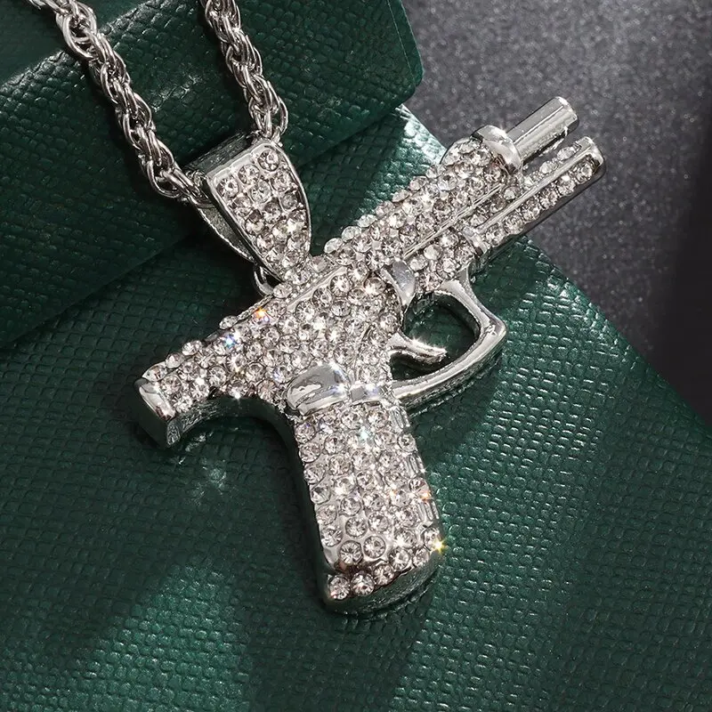 Another cornerstone of this necklace’s design is its capacity to appeal across multiple subcultures. Rock and punk enthusiasts often favor statement pieces that exude rebellion—spiked collars, studded jackets, or band patches are staples in these circles. A pistol or submachine gun pendant resonates with that rebellious streak, representing anti-establishment attitudes and a willingness to challenge norms. However, the addition of bling softens the aggression, injecting a layer of showmanship and extravagance that can integrate well into edgy outfits. If your personal style merges these influences—let’s say you love the grit of punk and the sparkle of hip hop—this necklace might become a go-to accessory that bridges both worlds.