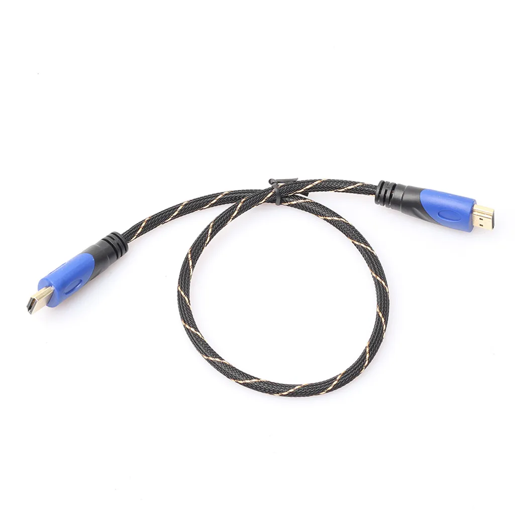 This Blue & Black Head Male-to-Male Video Cable with a black and golden finish is designed to deliver stable and high-quality video signals. Built with durable connectors and a net-wrapped protective layer, it ensures long-lasting performance and resistance to wear and tear, making it perfect for frequent use.