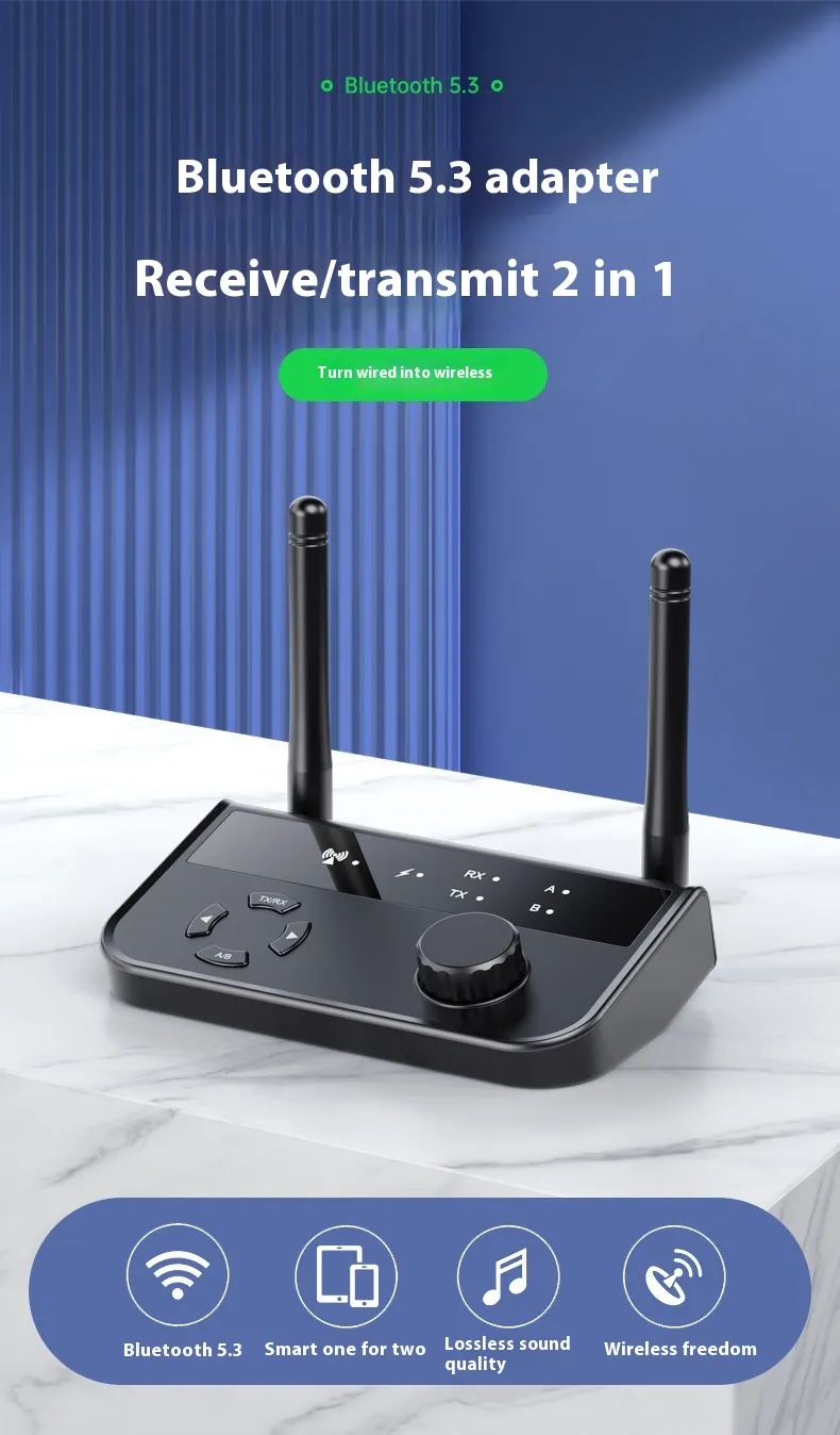 Enhance your audio experience with the Bluetooth-Compatible Music Receiver Transmitter 2-in-1. This versatile device combines the functionality of both a Bluetooth music receiver and transmitter, providing a seamless solution for all your audio needs. Whether you're looking to wirelessly stream music to your headphones or send audio from your device to your sound system, this compact and efficient gadget makes it easier than ever to enjoy high-quality sound, free from cables. Perfect for home audio systems, televisions, or any audio setup, this Bluetooth adapter is a must-have for music lovers, gamers, and anyone who enjoys superior audio quality.