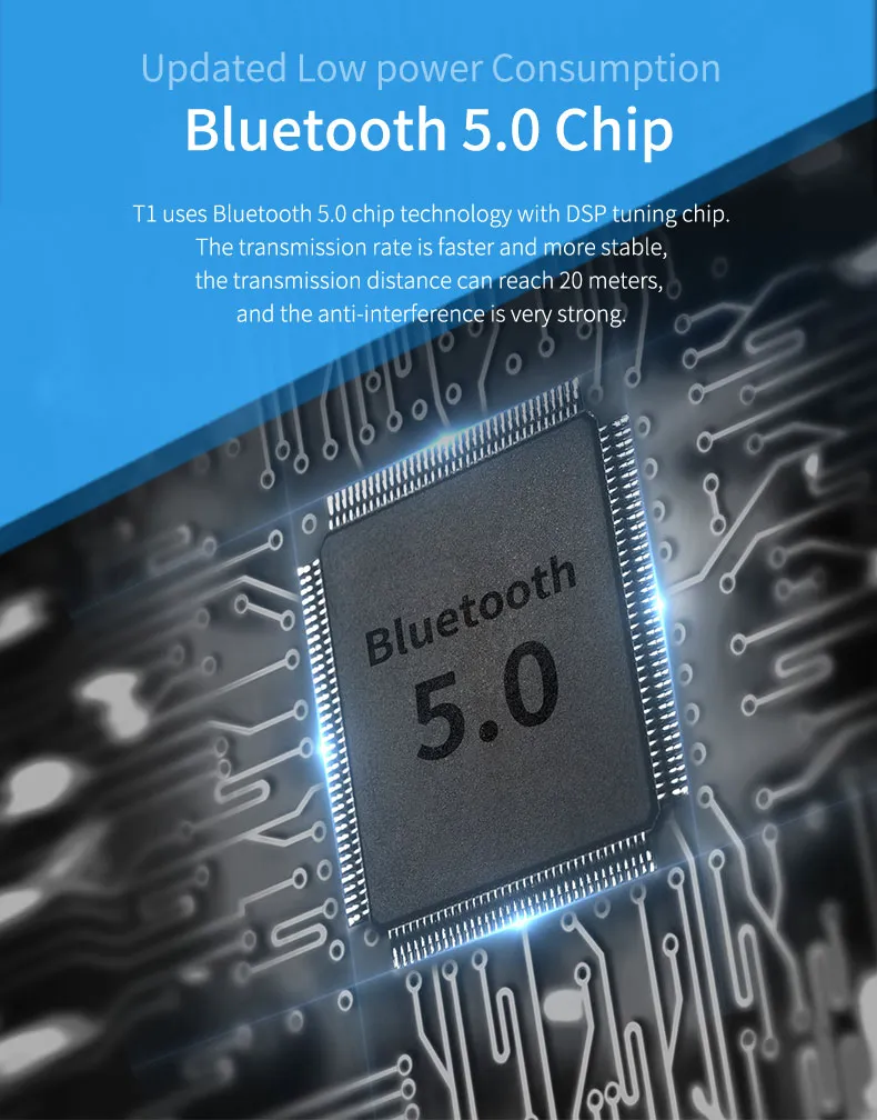 Bluetooth 5.0 and DSP noise canceling chip, enjoy faster and more stable data transfer