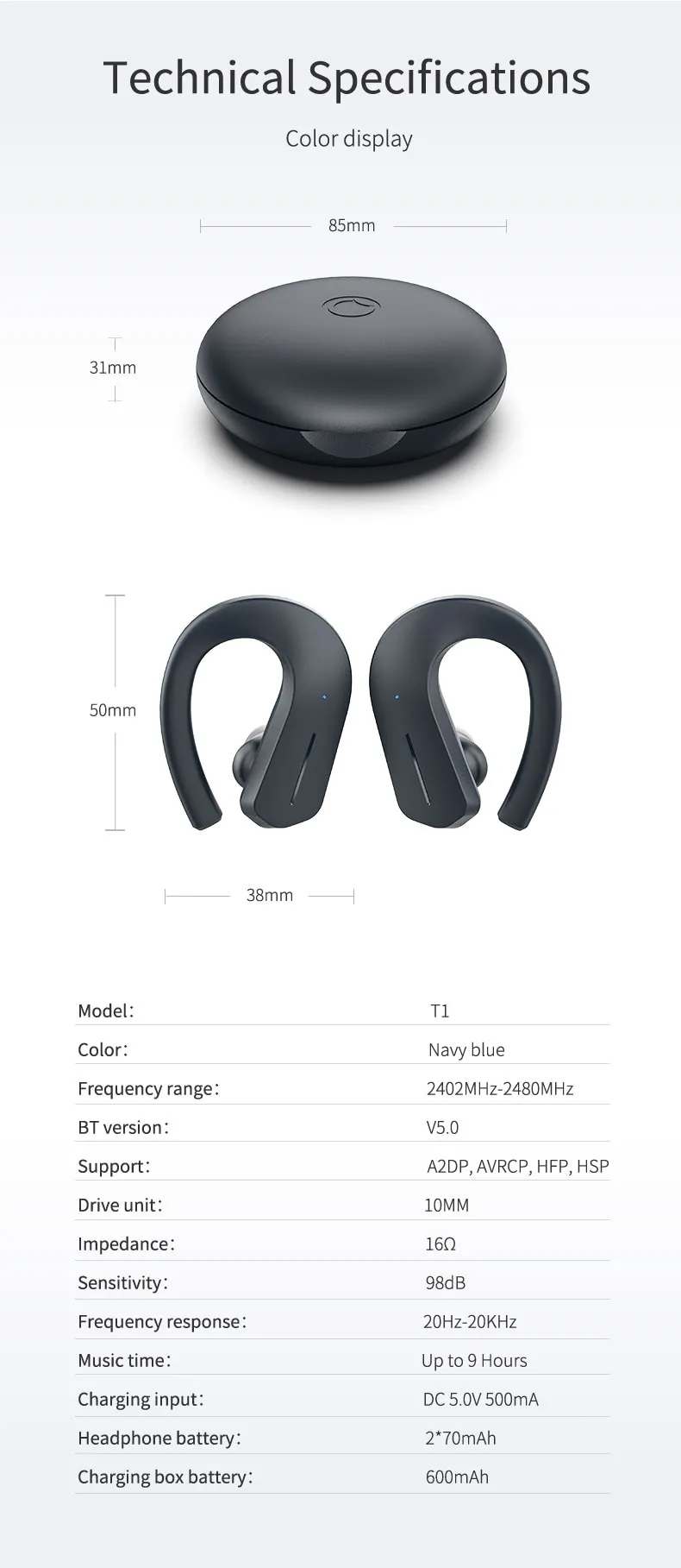 Unlike other tws, T1 uses a large 10mm driver like traditional headphones, gives you stereo hifi sound, just like staying at the movies