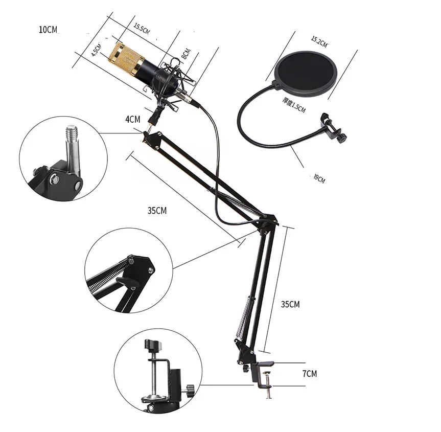 The BM800 microphone delivers high-quality, studio-level sound with a wide frequency range, ensuring that your voice or instruments sound rich, detailed, and natural. Whether you're recording vocals, podcasts, or voiceovers, the sound quality is always clear and crisp.